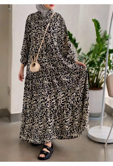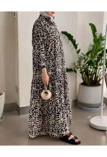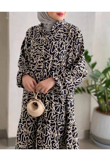 The white tree print design on a dark background adds a touch of uniqueness and calm to the look, while the modest style provides you with full coverage in an elegant and effortless way.