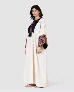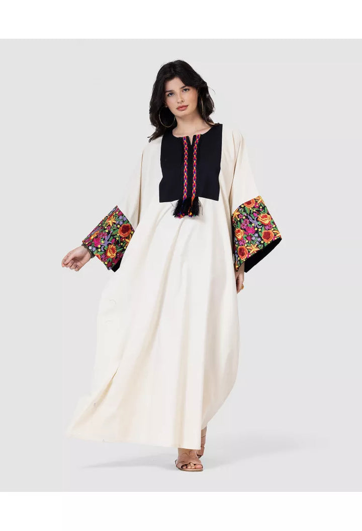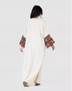 • أكمام واسعة مطرزة بنقوش فلكلورية ملونة