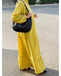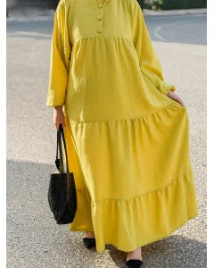 ارتدي الصيف بأناقة مع هذا الفستان المصمم من خامة الكتان الباردة، واللي يضمن لك إطلالة خفيفة ومنعشة مع كل خطوة. تصميم الأدوار الانسيابي يعطي الفستان حركة ناعمة وانسيابية، ويوفر مظهر أنثوي راقٍ بدون أي مجهود.