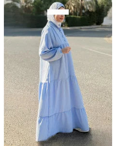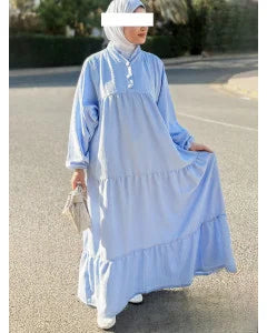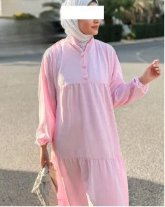 يتميز الفستان بقصة محتشمة وواسعة، بتفاصيل بسيطة وناعمة تلائم أجواء النهار والمساء، سواء كنتِ في مشوار، أو طلعة مع الصديقات، أو حتى جلسة رمضانية.