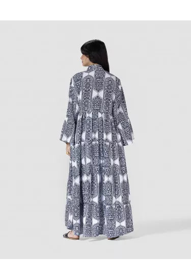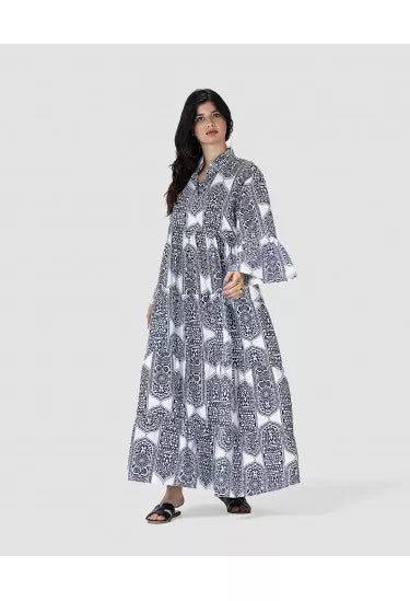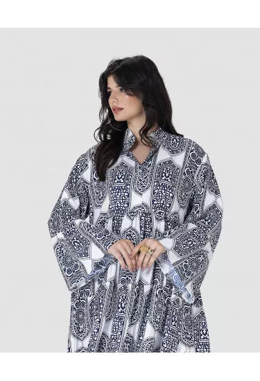 الخامة ناعمة وخفيفة، مناسبة للأجواء الدافئة، والتصميم مزود بياقة وأزرار أمامية تضيف لمسة من الرقي والبساطة. سواء كنتِ تبحثين عن إطلالة كاجوال فخمة أو فستان أنيق للزيارات، فهذا النفنوف هو خيارك المثالي.